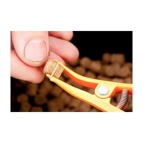 Specjalnie zaprojektowane szczypce, służące do zakładania pelletu na gumkę. Montaż przynęty jeszcze nigdy nie był tak prosty, wystarczy rozciągnąć szczypcami gumkę, wsunąć pellet i gotowe!