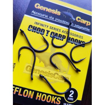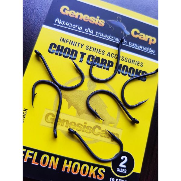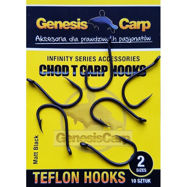 Haczyki karpiowe Genesis sa specjalnie zaprojektowane, aby spełniały wymagania wędkarzy nad wodą. Dzięki temu haczyki sprawdzają się w każdej sytuacji nad wodą, pokryte cienką warstwą teflonu, który minimalizuje refleksy świetlne, co zwiększa skuteczność łowienia. Haczyk idealny do przyponu typu D-RIG.