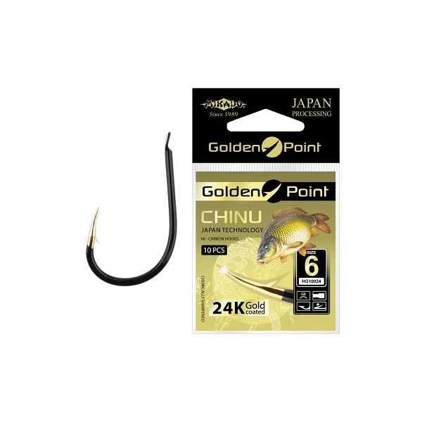 Wytrzymały i wyjątkowo ostry kuty hak z ostrzem pokrytym 24-karatowym złotem, podstawowy hak przy połowie ryb karpiowatych na przynęty pochodzenia roślinnego.