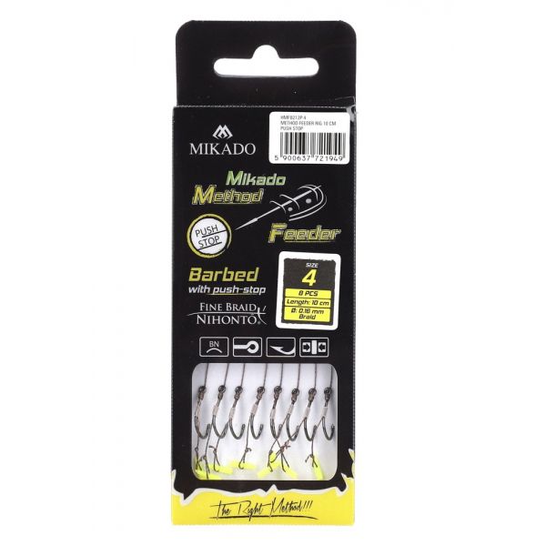 Doskonałej jakości, gotowe przypony do popularnego Method Feeder'a. Dostępne w wielu wersjach z włosem i gumką do pelletu oraz z hakami z zadziorem i bez zadziora.