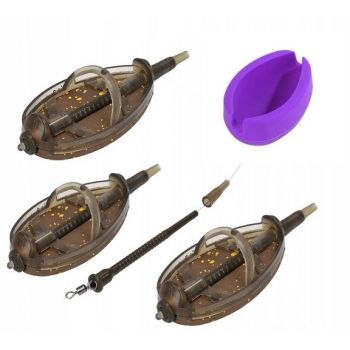 Koszyczek zanętowy do połowów na dużym dystansie, nieoceniony podczas wyczynowego wędkowania, szczególnie na zawodach. Dzięki zewnętrznie zamocowanemu obciążeniu, zestaw potrafi osiągnąć bardzo duże odległości podczas rzutu.