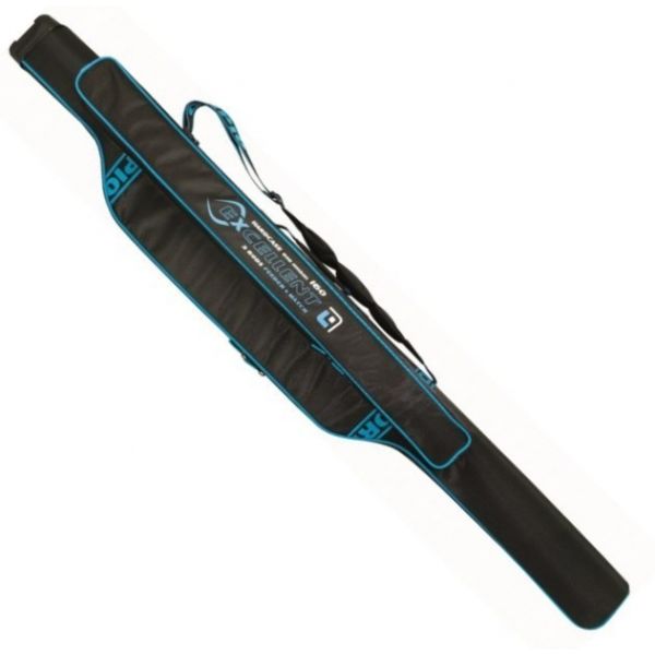 Pokrowiec dodatkowo posiada dwie zewnętrzne komory na sztycę do podbieraka, parasol lub inne długie akcesoria. Pokrowiec mieści 3 uzbrojone wędki z kołowrotkami.