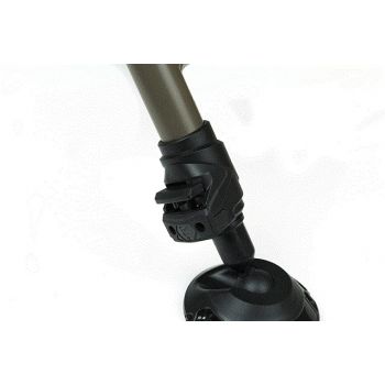 Duży stolik karpiowy z kilkoma komorami. Nogi osadzone są na bagnetowym złączu i po rozłożeniu blokowane śrubami mocującymi.