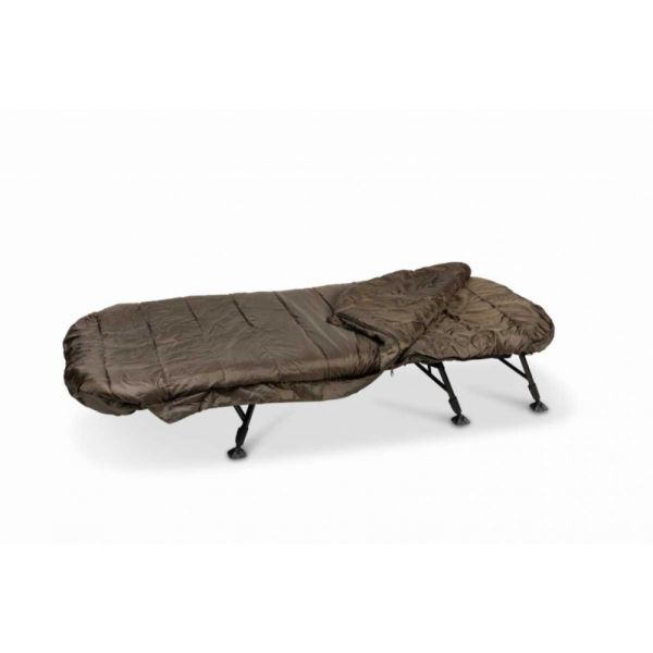 4-sezonowy śpiwór, którego rozmiary doskonale pasują do łóżka Nash Tackle Bedchair Wide. Rozmiar Wide umożliwia wygodny sen każdemu karpiarzowi, niezależnie od postury. Grube, puchowe wypełnienie zapewni ciepło i wygodę przez znaczną cześć sezonu, poza najmroźniejszymi okresami. Zarówno zewnętrzna jak i wewnętrzna strona śpiwora wykończona została gładką, łatwą w czyszczeniu tkaninę. Wygodę zwiększają również specjalne kurtyny, zapobiegające przedostawaniu się chłodnego powietrza przez zamki. Solidne zamki posiadają zabezpieczenia, dzięki którym nie zacinają się podczas odpinania czy zapinania. System mocowania za pomocą taśm i klamer całkowicie zapobiega przesuwaniu się śpiwora, co bywa bardzo irytujące. W zestawie ze śpiworem wygodny pokrowiec kompresyjny.