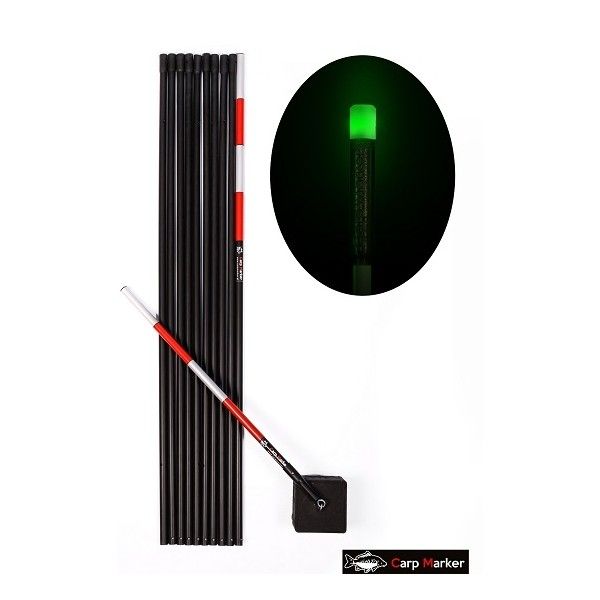 Długość markera 6 metrów ( 5×1 m oraz 2×0,5 m ) . Diody dostępne w 4 kolorach: zielony,czerwony,niebieski,żółty. Dioda zasilana dwoma paluszkami AA. Czas świecenia od od 40 do 60 dni w przeliczeniu na godziny ( od 960 do 1440 godzin ). Sekcje markera łączone na proste i szybkie zatrzaski. Ciężarek odpinany, z systemem łączenia w środku rurki, więc nie ma możliwości o splątanie żyłki.