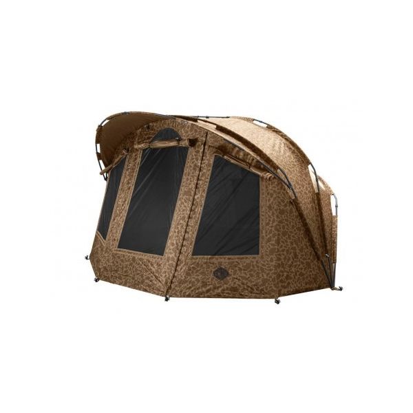 Niezaprzeczalnym atutem namiotu jest tkanina z popularnym wzorem CARPATH, która z pewnością zachwyci wszystkich fanów tego oryginalnego kamuflażu. Dzięki dużym wymiarom w namiocie bez problemu zmieści się 2 łóżka, pozostawiając jednocześnie w środku dużo miejsca na torby i inne elementy wyposażenia potrzebne do wygodnego pobytu nad wodą. W razie potrzeby wnętrze może pomieścić do 3 łóżek. Oczywiście są też dwa uchwyty do mocowania wędek, ale też duży daszek, który zapewnia ochronę przed słońcem czy deszczem. Wewnątrz dodatkowo 2 haczyki na suficie, na których można zawiesić np. lampę.