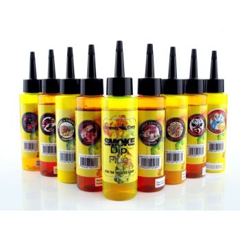 Dip SMOKE FLUO to niezwykle gęsty dip, który zawiera środek fluorescencyjny, dzięki temu tworzy jaskrawą chmurę zapachową, a efekt smużący powoduje wzmożone zainteresowanie wśród ryb spokojnego żeru. Dip jest słodki i świetnie wchłania się w pop-upy, kulki proteinowe, ziarna, methodmixy i zanęty sypkie. NIE ROZPUSZCZA PVA!!