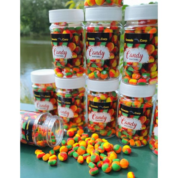 Każda przynęta CANDY WAFTERS jest w 4 kolorach, w opakowaniu znajdują się zarówno kulki, jak i dumbelsy. Przynęta idealna do łowienia ryb karpiowatych za pomocą methody.