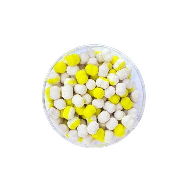 Dwukolorowe pop-uy Benzara przeznaczone do połowu ryb metodą feederową. Przynęty charakteryzują się tym, że są połączeniem dwóch smaków i kolorów.