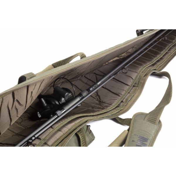 Pokrowiec na wędki. Posiada możliwość przyczepienia pojedynczej lufy. Mieści wędki wyposażone w przelotki 50mm. Zapinana na zamek kieszeń o wzmocnionym dnie na podpórki. Kieszeń na centralkę lub ciężarki. Wyściełany, regulowany pas naramienny oraz uchwyty EVA.
