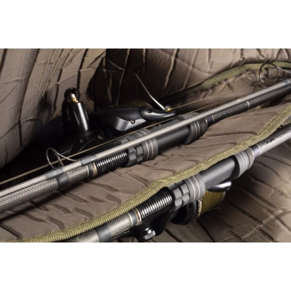Wykonana z tkaniny poliestrowej Rip-Stop 600D, dostępna w trzech rozmiarach dla dwuczęściowych karpiówek o długości 10ft, 12ft i 13ft. Zamek błyskawiczny o grubości 10mm, profil w kształcie pasujący do każdej karpiówki na rynku. Mieści także wędki z przelotką 50mm i dużym kołowrotkiem typu Big-Pit.