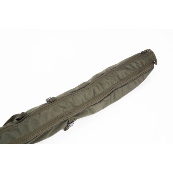 Pokrowiec na wędki. Każda z wyściełanych wnęk mieści 3 uzbrojone wędki z przelotkami 50 mm. Dzięki dwóm sakiewkom oraz tasiemkom z klamrami, możliwe jest przypięcie dwóch dodatkowych wędek lub wędek w lufach. Pokrowiec posiada wyściełany, regulowany pas naramienny i zamszowe uchwyty, wzmacniane, wodoodporne dno oraz podwójne zamki.