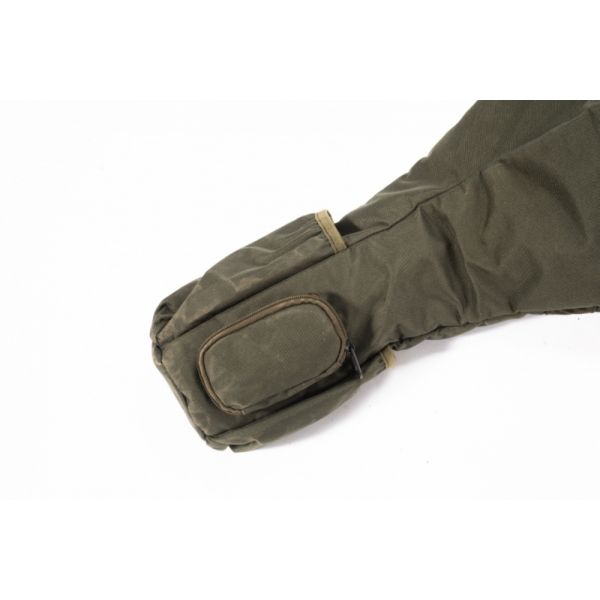 Pokrowiec na wędki. Każda z wyściełanych wnęk mieści 3 uzbrojone wędki z przelotkami 50 mm. Dzięki dwóm sakiewkom oraz tasiemkom z klamrami, możliwe jest przypięcie dwóch dodatkowych wędek lub wędek w lufach.