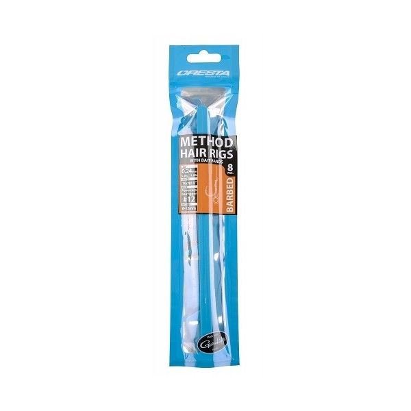Przypony z haczykiem marki Cresta dedykowane do połowu methodą. Zakończone gumką do zastosowania przynęty.
