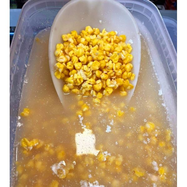 Kukurydza fermentowanych naturalnie, bez dodatku konserwantów, najpierw gotowana z dodatkiem cukru i przypraw, następnie przelana do beczek, gdzie naturalnie z dodatkiem cukru fermentuje. Po przejściu całego cyklu fermentacji ziarno jest gotowe do łowienia. Pakowana w mocne wiadro.